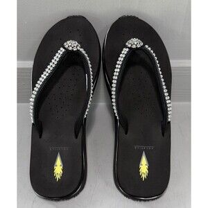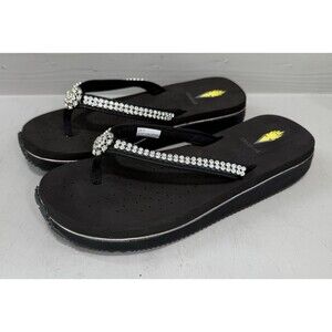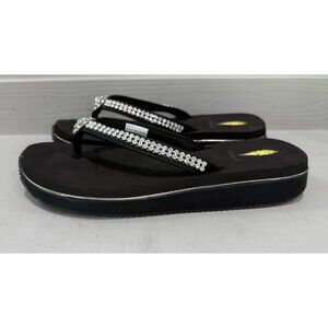 Volatile Wedge Thong Sandals Black Rhinestones Women's Size 10 NWOB Slip-On