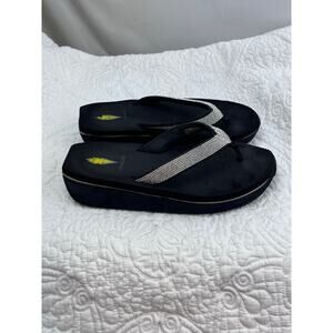 Volatile Women Black Rhinestone Wedge Vacation Beach Pool Summer Sandals Size 10