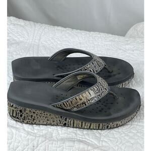 Volatile Womens 7 Frappachino Animal Print Beach Summer Flip Flop Sandal Wedges