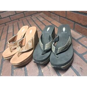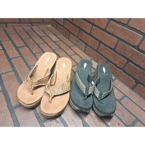 Volatile Women's Island Wedge Sandal Size 10 Black And Tan 2 Pairs