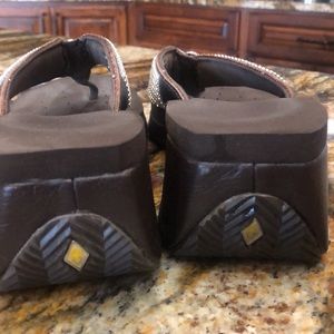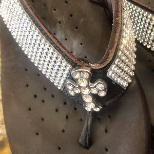 Volatile, brown beautiful bling embellished flip-flops. Great preowned condition, size 10