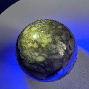 This Volcano Agate sphere features vibrant natural patterns with UV reaction that reveals hidden glowing hues. Known for grounding energy, it enhances stability, inner strength, and courage. Metaphysically, it supports emotional healing and spiritual growth.