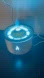 Volcano contemporary machine with electronic components and remote control. Sleek design in white, blue and red.