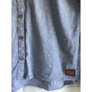 Volcolm Jeans Light Blue White Speckle Polka Dot Pocket Button Down Top Sz Small