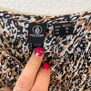 Volcom 1 Minute More Leopard Print Fitted Button Down Mini Dress with pockets XS