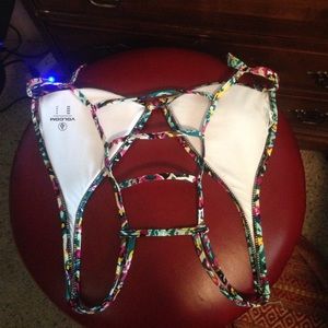 Like new! Worn only a few times due to size. The top is a medium which is just a tad too big so it doesnt fit right on me. The bottoms are a small and are also the cheeky style with ruffles on the butt. Very cute, paid $135 @volcom warehouse in CA. Asking $65