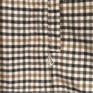 Volcom 3/4 Sleeve Button Up Brown Plaid Hooded Lined Coat. Jacket. Small.