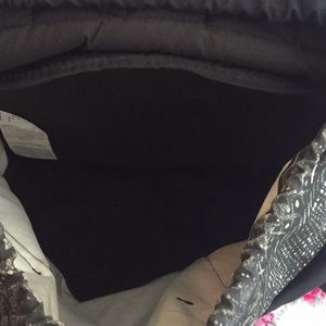Black, Gray and White Volcom drawstring adjustable backpack. In excellent condition with two exterior pockets. The inside has a lot of room for books, clothes, etc and there is an area for a laptop!