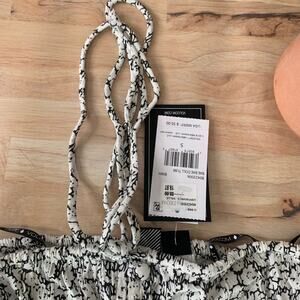 Volcom Bae Bae Doll Tube Top in Black & White. Cropped top. Tie front to wear like a halter. Drawstring. Elastic. Lightweight material. W33