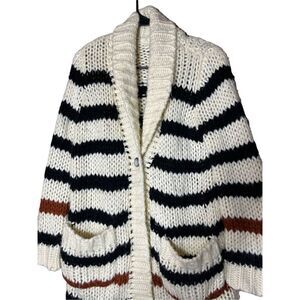 Volcom Big Cozy Cardigan Sweater Size XS. Great condition. Cream, Black, and Brown colors. One button on the front.