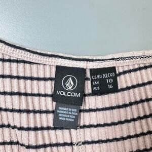 Volcom Big Island Energy One Shoulder Midi Dress in Pink Black Striped