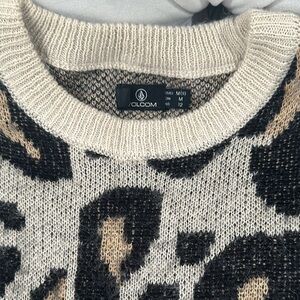 Volcom Black and Tan Crew Neck Sweater with Bold Animal Print