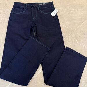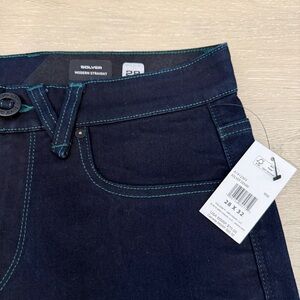 These Volcom jeans feature a timeless straight cut in a rich blue hue, offering a clean and sophisticated look. The smooth, consistent texture of the denim makes them versatile for various occasions, ensuring both style and comfort.