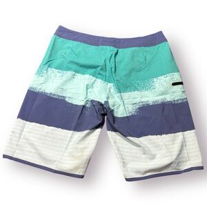 Volcom Blue White Board Shorts Size 33" Swim Trunks Retro Beach Shorts Y2K