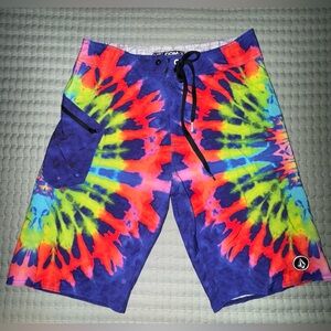 Volcom Board Shorts Mens Purple Tie Dye Lido 4 way Stretch size 29. VGUC