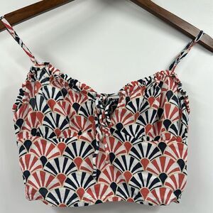 Volcom Cropped Top Size Small shirred stretchy back with adjustable straps for perfect. Ties at neckline and is adjustable. Gently used condition with no visible flaws.