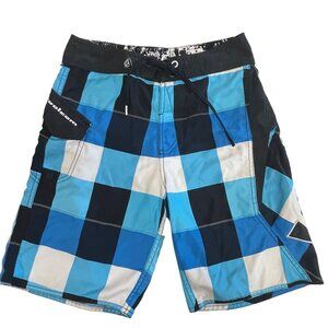 Volcom Boys 12 Blue Ice Plaid Boardshorts Swim Surf Trunks Pocket Logo Spellout