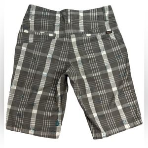Volcom Boys Cotton Gray and White Plaid Shorts Size 12 With Little Designs