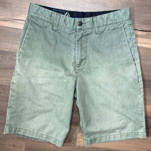 Volcom Boys Faded Army Green Fricken Chino Flat Front Pocket Shorts Size 28W