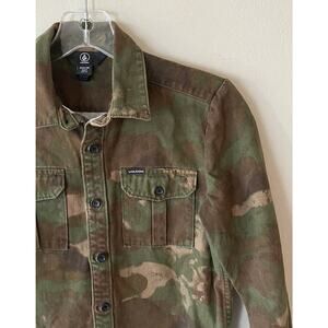 Volcom Boys Huckster Camo Print Button Down Long Sleeve Shirt Small 8 Years. #Z18