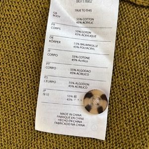 The sweater is in good condition and comes with a spare button. It has tassel features on the arms.
