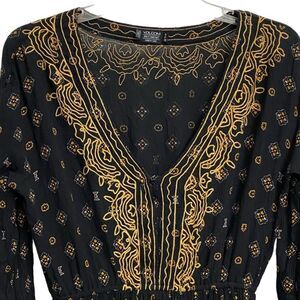 Volcom Champain Trail Mini Dress Size S Boho Folksy Black Gold Embroidered Rodeo