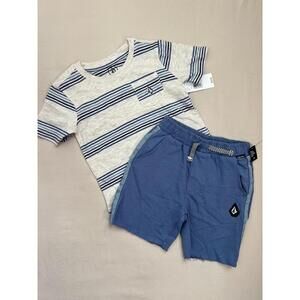 NWT Volcom Clothing Set Kids Size 3T Blue Casual Striped TShirt Elastic Waistband Playful Outfit Summer Ready