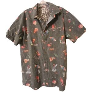 Volcom Club Destroy Shirt Men's Sz L Gray Flamingo Birds Pizza Drunk Punk made in FRANCE