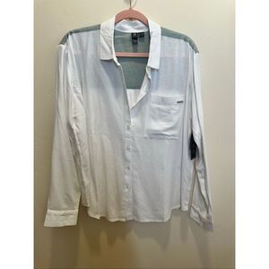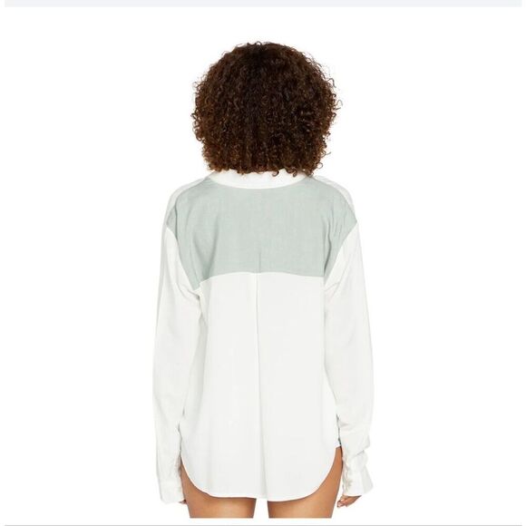 Volcom Coco Ho Yoked Green and White Linen Blend Button Down Top Size Small.