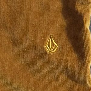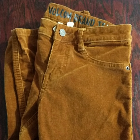 Volcom brand coduroy pants size 1. Great condition except for the small blemish shown in last picture. Cute Volcom emblem embroidered on back of pant leg. Front pockets are decorative pockets, back pockets are functional. The color is close to a burnt orange.