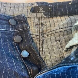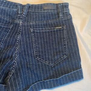 🔷 Volcom Dark Pinstripe High-Rise Denim Shorts – Size 26