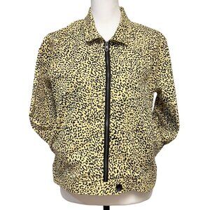 Volcom Denim Animal Print Full Zip Jacket Cheetah Sweater Collar Pockets Large