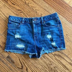 Volcom Distressed Stix High Rise Raw Hem Denim Jean Shorts Size 5