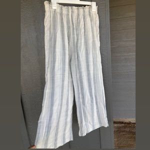 These Volcom dress pants are lightweight and comfortable. 100% viscose. They have a scrunched waistline with a bow. Also has pockets. Not worn very much, great condition.