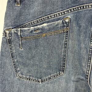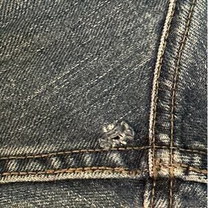 Pre-owned - good condition. There is wear at the hems and back pockets. There is a very small hole in the groin - see pics for details.