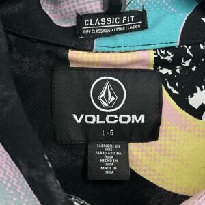 Volcom Entertainment Collection Men's Button Down Shirt - bold DJ Record print