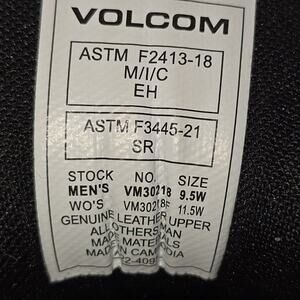 The Volcom Evolve EH Comp Toe Men Shoes in size 9.5W are black leather work boots with a composite safety toe. They feature a leather lining, insole, and outsole, providing durability and comfort for long hours on your feet. This pair of Volcom boots is designed for men seeking a reliable and stylish option for their work footwear needs, offering both protection and style in a leather construction. **REP BOX**