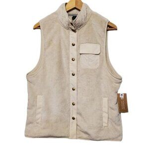 Volcom Fleece Vest Womens Size XS Beige Mock Neck Snap Button Outdoor Hiking