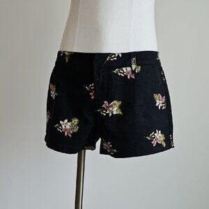Stylish black women's shorts featuring a vibrant floral pattern. Perfect for casual outings and summer days.