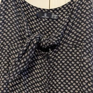 Volcom Black and White Try The Knot Floral Print Dress. The Try the Knot Dress is a cute cami style with a tie at front chest and a peek-a-boo opening. Crafted with a light crepe fabric and button-down front.
