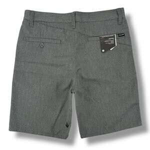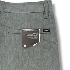 VOLCOM Part of Volcom's Eco-True collection, this Frickin Chino short is made partially with REPREVE™ Recycled Polyester, turning discarded plastic bottles into comfortable, durable, truly functional everyday style. Modern fit. Button closure with zipper fly. Woven stone logo on back left leg. Woven label on back right pocket. 65% Recycled Polyester 35% Cotton. Machine wash. Charcoal gray color. Boys size 18 (29) X-Large 7" inseam New With Tags