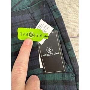 Item: Volcom FroChickie High Rise Plaid Chino Pants Womens 29x30 Blue Green NEW