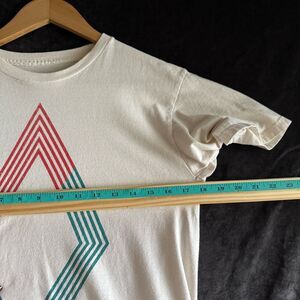 Elevate your streetwear rotation with this Volcom Geometric Graphic Tee, featuring bold red and teal lines on a crisp cream background. Size Small. Lightweight and breathable, perfect for layering or rocking solo during warmer days. Ideal for skateboarding, surfing, or casual street style vibes. Minimalist but striking design that stands out effortlessly. Harder-to-find graphic—don’t miss out!