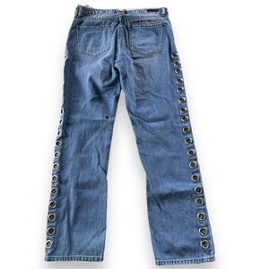 Using oversized grommet hardware, these GMJ Boyfriend Jeans aren’t your typical denim. Show off your retro style with this fresh new look at a women’s boyfriend jean.