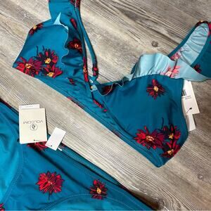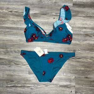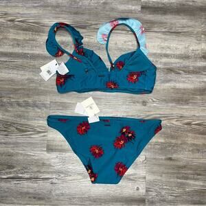 Volcom Good To Grow V-Neck Top & Hipster Bottom - Stormy Blue Women’s Sz L NWT