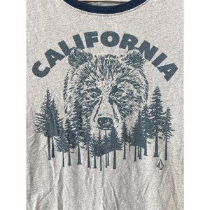 Volcom Graphic Tee Size Medium California Bear Ringer T Shirt Gray Navy Cotton