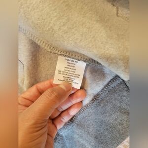 Comfortable gray utility jacket by Volcom. Features a hood and front pockets. Perfect for everyday wear.