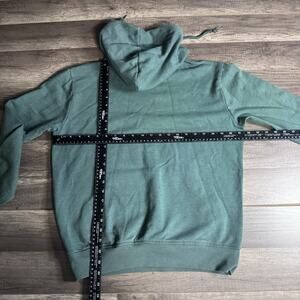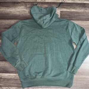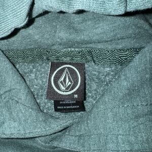 The product is a men's size medium Volcom green hoodie. It features a solid color with a drawstring closure and a pullover style. The hoodie is hooded and perfect for casual wear or activewear. Made by the brand Volcom, known for their quality clothing and unique designs. This hoodie is a stylish and comfortable addition to any man's wardrobe.