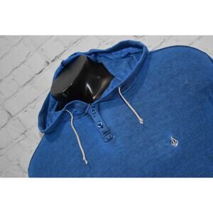 Volcom Gym Thermal Hoodie Shirt Mens Size Large Blue Performance