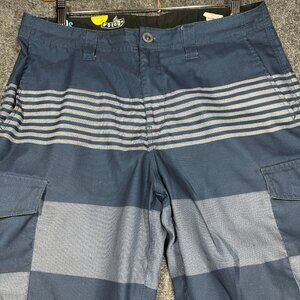 Volcom H2O Cargo Shorts Mens 34 Blue Stripe Zip Fly Pockets